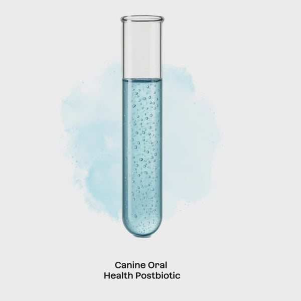 Canine oral health postbiotic that targets harmful bacteria for fresher breath and a healthier smile.
